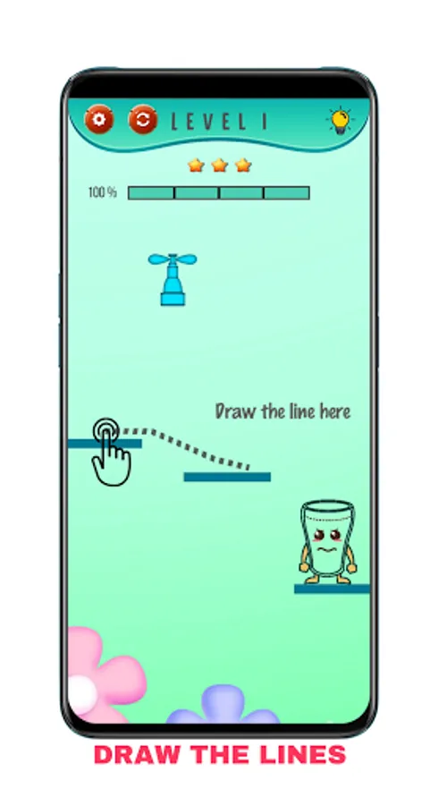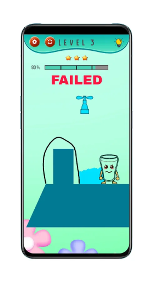 Draw the line and fill the Blue glass Game, initially glass is sad and your task is to draw freely line to fill up the glass with Water and make a happy glass. It's a puzzle game, you can use your logic and fill the glass.