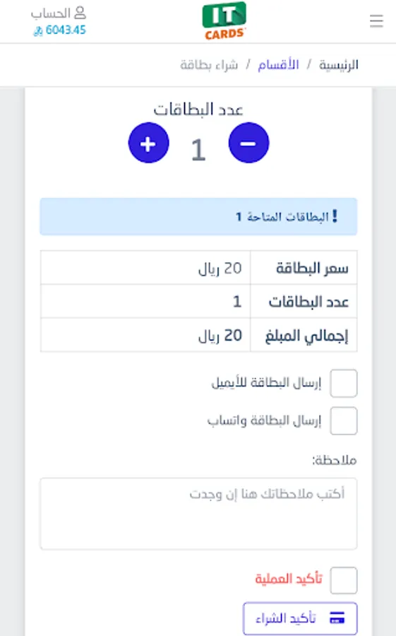 IT Card application offers you the service of selling all types of electronic cards from STC, Mobily, Zain and others