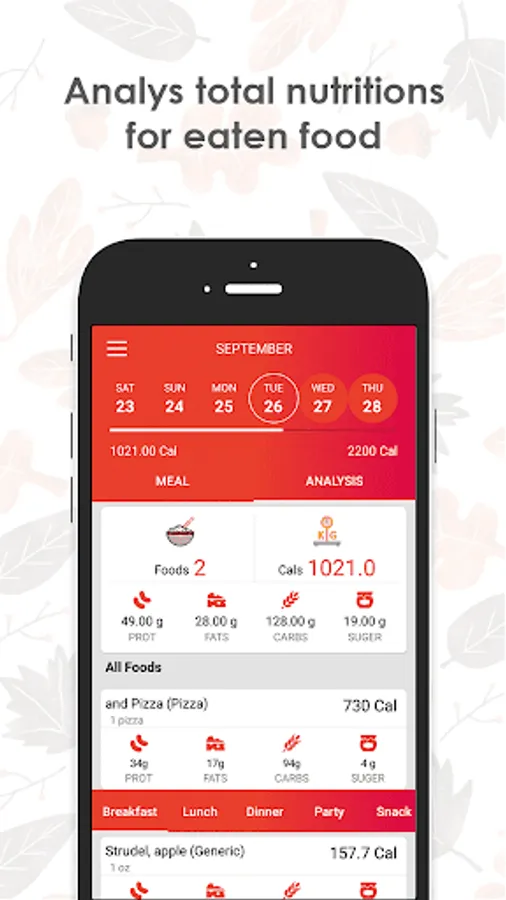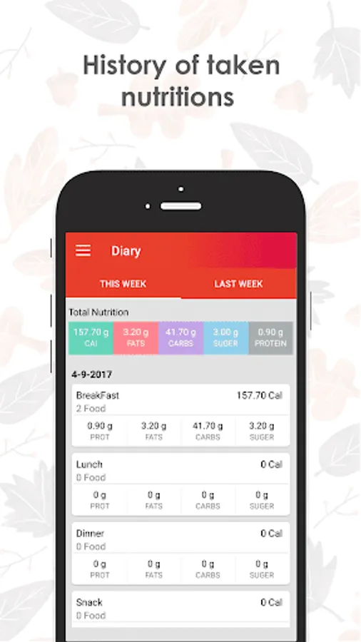 - Add your foods on daily basis Breakfast, Lunch, Dinner, Party and Snack list with nutrients facts.