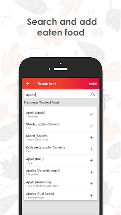 - Simple food-specific serving sizes (cup, grams, portions etc.)