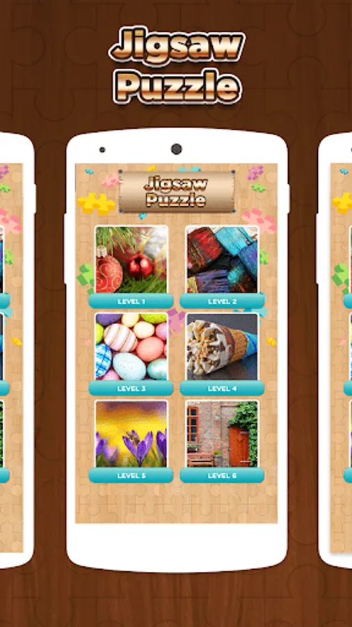 - Create custom puzzles from your own photo collection (Camera or Gallery).