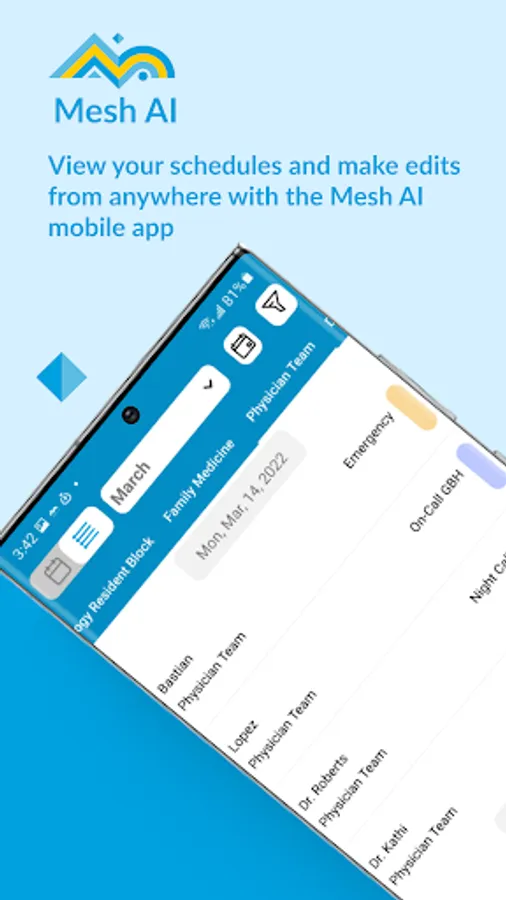 Dubbed the first “Socially Intelligent Staff Scheduling” cloud platform, MeshAI is a cutting-edge human resource scheduler designed for the most complex healthcare workforce structures.