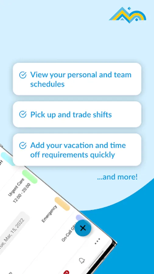 The MeshAI mobile app allows members of teams using the MeshAI.io scheduling platform to see their upcoming shifts, message their co-workers, swap shifts, make vacation requests, add work time preferences, and get notifications about any scheduling changes instantly.