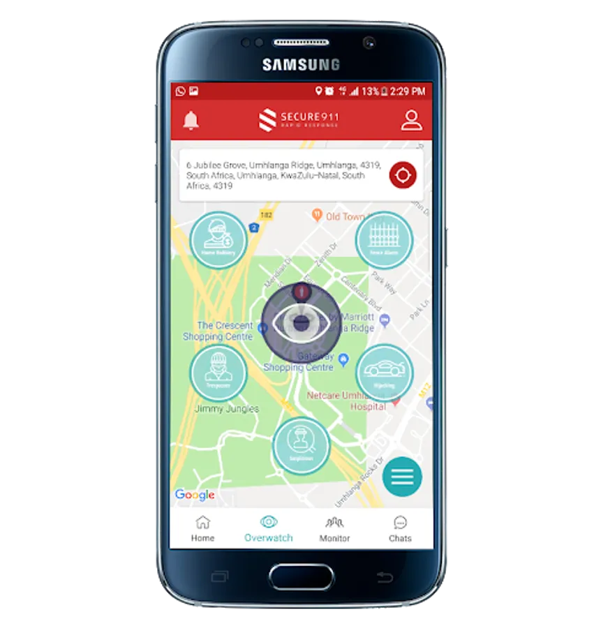 • Intelligent Overwatch feature made for Community Watch, Community Policing forums and Estate Security Groups with Geo Location services being triggered only when there is a Panic Alert sent and assistance is needed