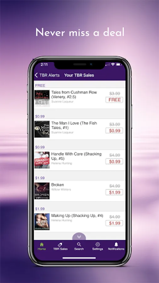 • When our subscribing authors put a book on sale, that is on your want to read shelf (TBR), you get a notification of that sale to your phone.