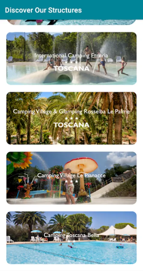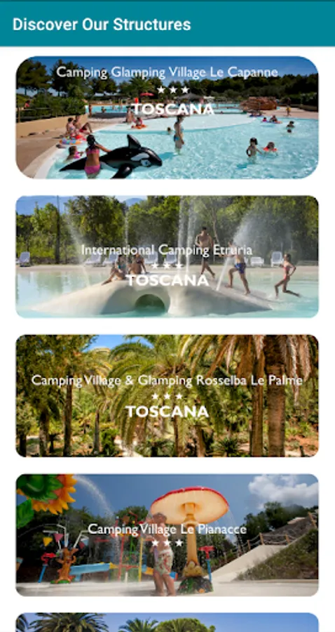 Benvenuti in Vacanza di Charme, la soluzione ideale per le tue vacanze in mezzo alla natura. Vacanze di Charme è un marchio che comprende al suo interno cinque meravigliose strutture, tutte situate in punti strategici, tra mare e natura incontaminata, in alcune delle zone più belle della Toscana, Isola d'Elba. Una nuova concezione di vacanze che coniuga perfettamente la voglia di vivere all'aria aperta con i migliori servizi sempre garantiti: grandi piscine, animazione per i tuoi bambini, escursioni guidate nel circondario e tante possibilità di praticare sport ed attività fisica sono solo alcune delle coccole quotidiane che ti offriamo nei nostri campeggi: scopri quello più adatto a te e prenota subito la tua Vacanza di Charme!