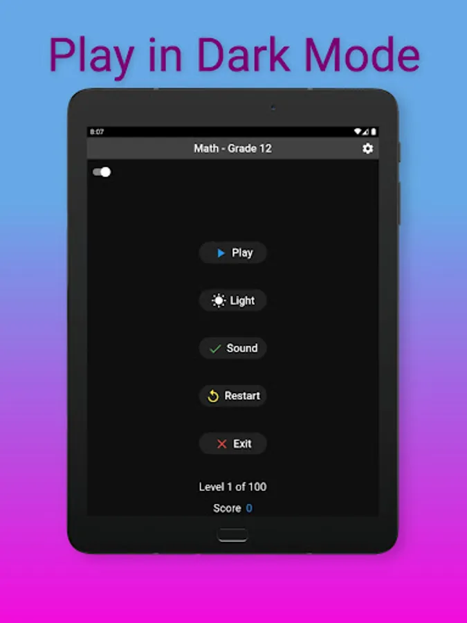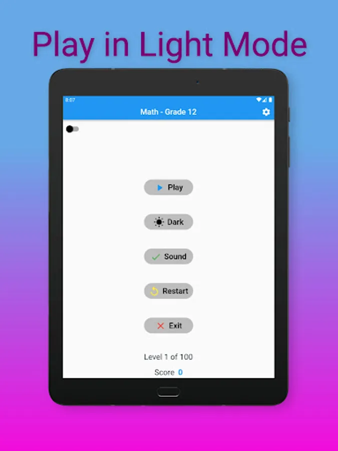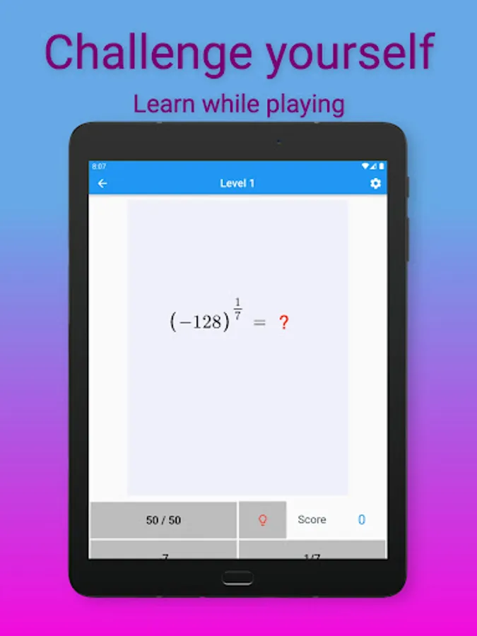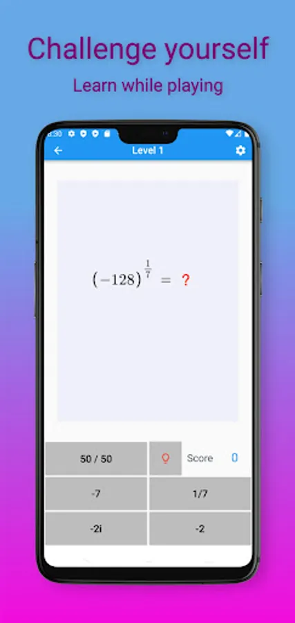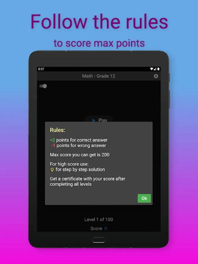 Challenge your mind with 12th grade level Math and see where you stand. There are 100 questions/levels sprinkled with some interesting Math puzzles in between. Create and share a certificate of your final score. Challenge your friends and family to see who can score the most.