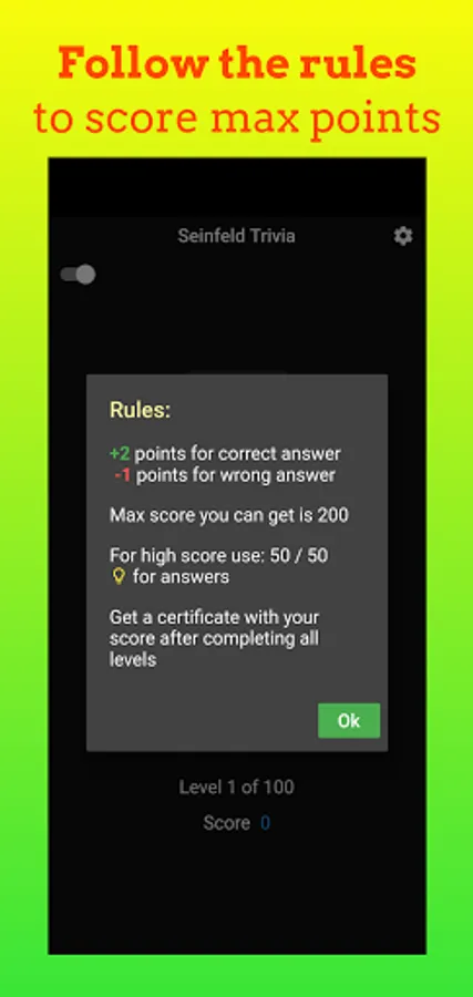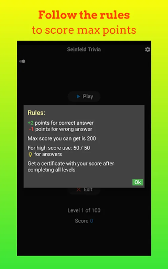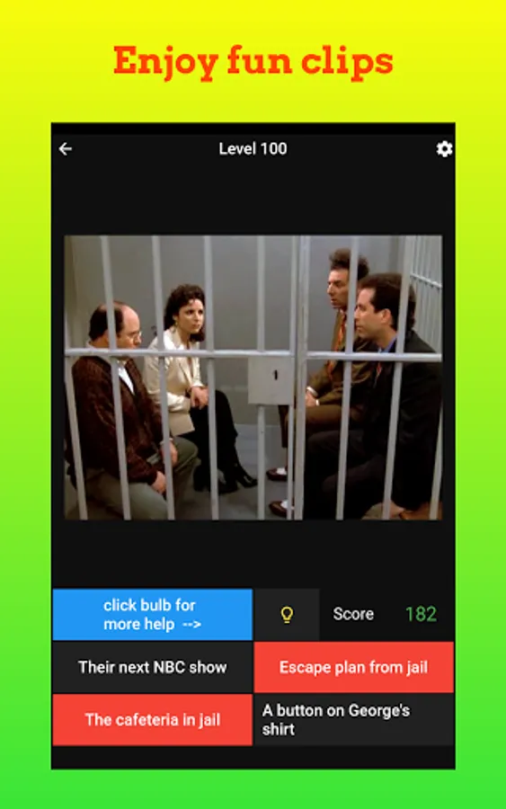 There are 100 questions in all and you can generate a Seinfeld fan certificate in the end. Share this certificate with other Seinfeld fans and challenge them to prove that they are bigger fans than you.