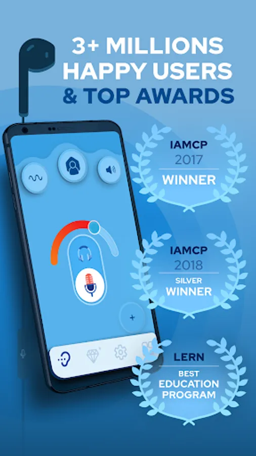 Hearing test provided in the application can be used only for hearing app adjustment. Hearing test results are not a substitute for professional audiology tests (ENT consultation required).