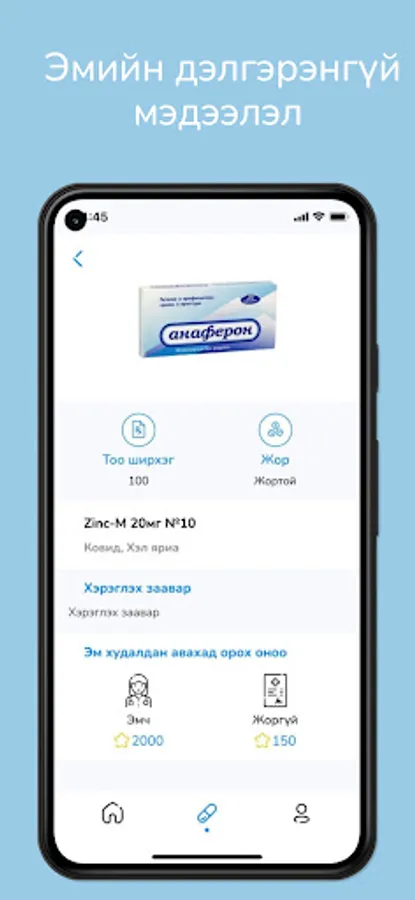 Энэхүү апп нь тухайн хэрэглэгч эмийн сангаас жорын цаас болон жорын цаасгүйгээр худалдан авалт хийхэд эмч болон эмийн санчид оноо орон тэр оноогоорооо зарцуулалт хийдэг эмийн бүтээгдэхүүн зардаг апп.