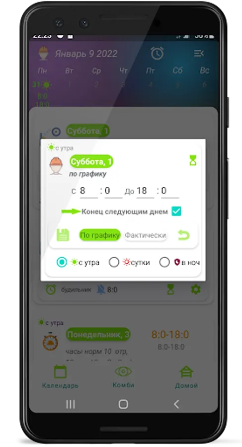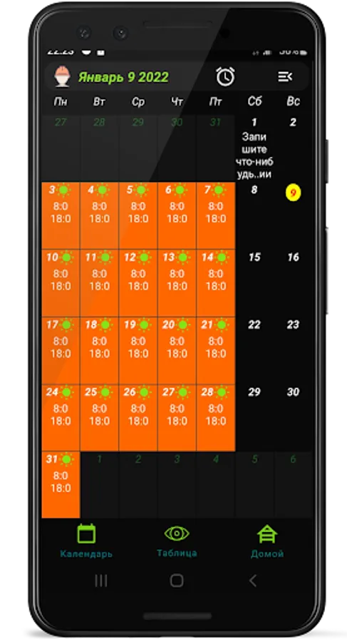 The calendar greets you with the phrase; " Hello Master, I'm your calendar, and I'm ready to work ))". Some buttons are also voiced by a voice, so that you don't get bored.