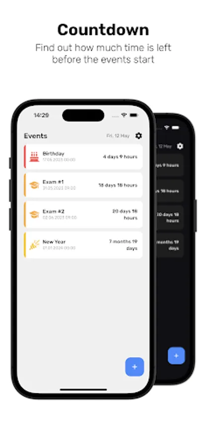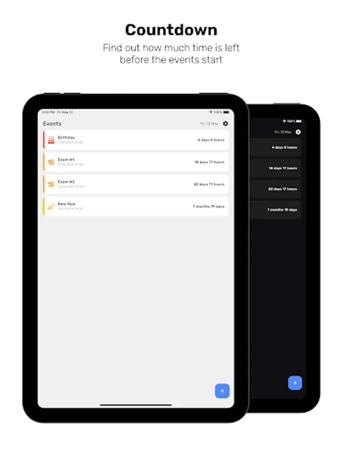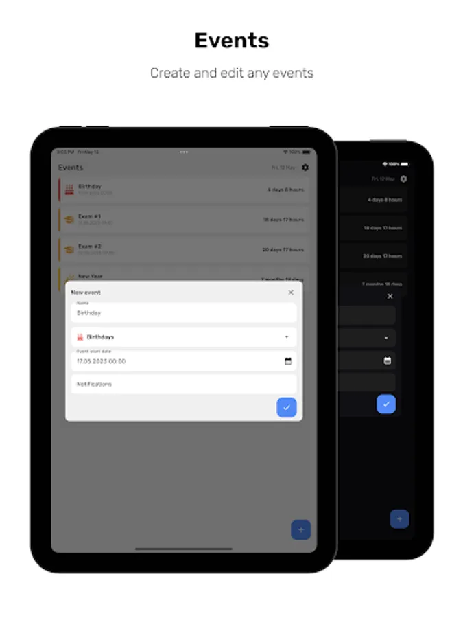 The mobile application allows you to track all your important events: vacation, birthday, anniversary, graduation, concert and much more.