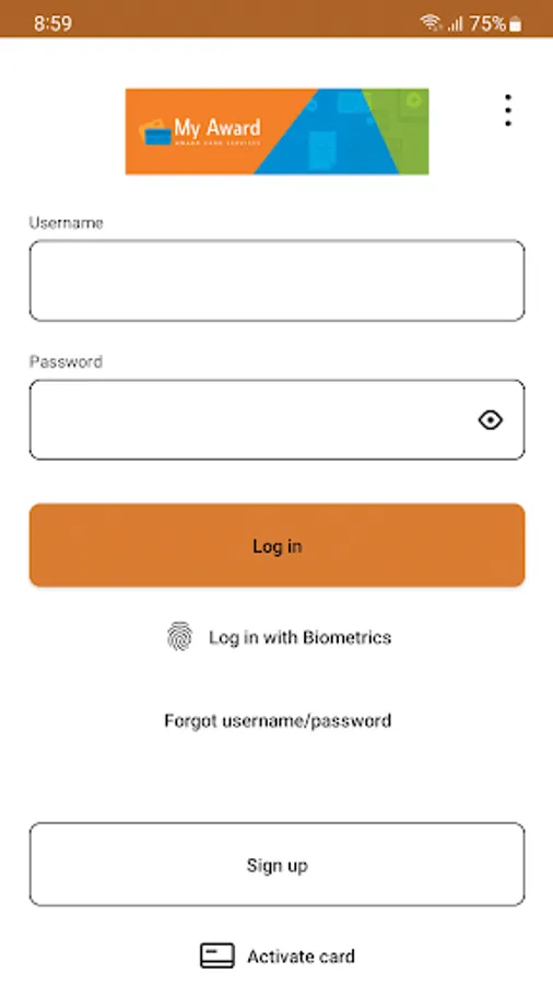 For the My Award - Award Card Services mobile app, you will use your Prepaid Consumer Website credentials.