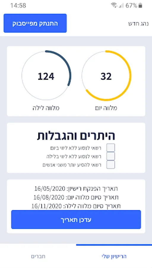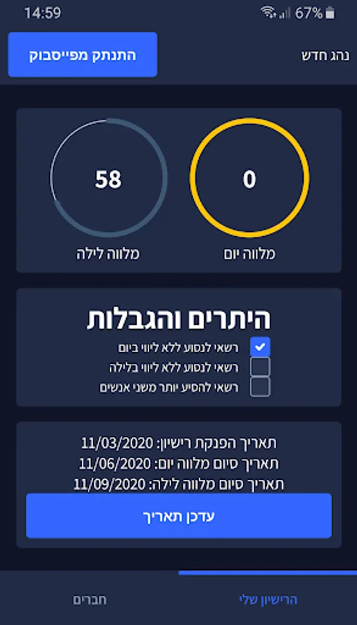 The "New Driver" app counts the time left until the day lender and the night lender, in addition, the app displays the permits and restrictions at each stage.
