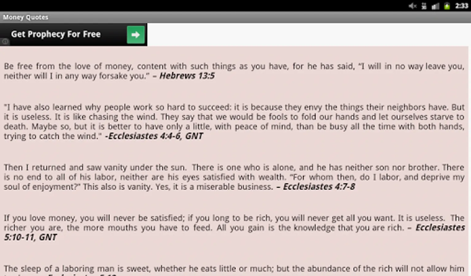 Money Quotes from Bible Verses is a comprehensive collection of quotes about money found in the Bible. It has various categories including money and wealth quotes about God’s Providence, Generosity, Stewardship, Love of Work and even about Investing, Lending and Borrowing Money.