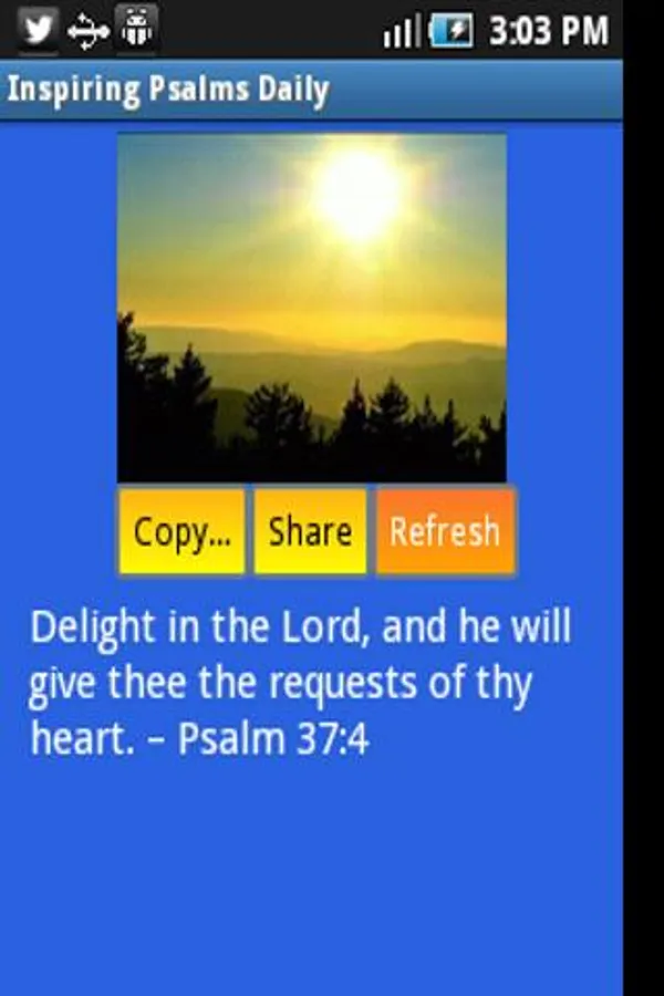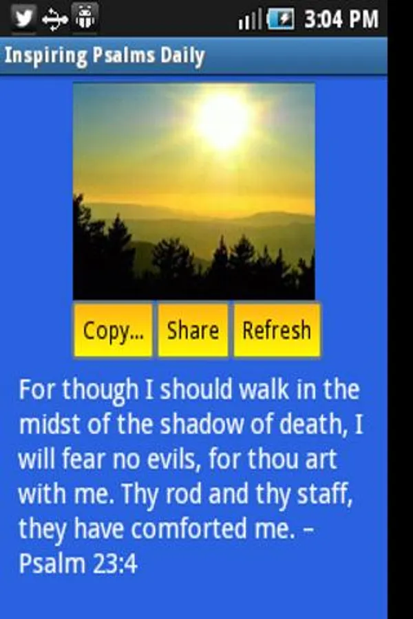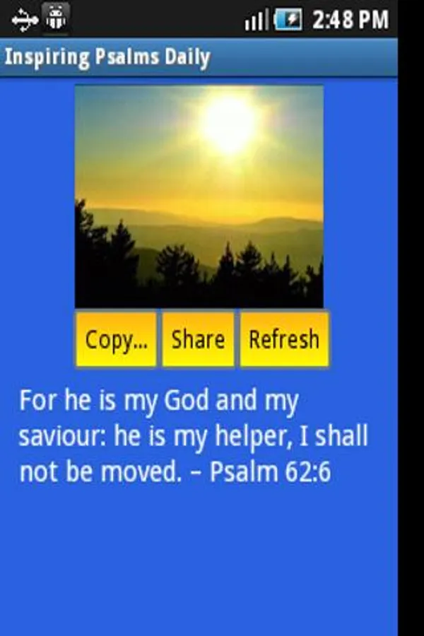 Inspiring Bible Psalms Daily is a simple and easy to use app with quick ‘refresh’ function to give you a random inspirational Psalm from the Bible every time you may need it. Use it daily or whenever you need healing, affirmation or spiritual guidance. Be blessed with these inspired words from the Lord! Keep it handy for easy reference and sharing.