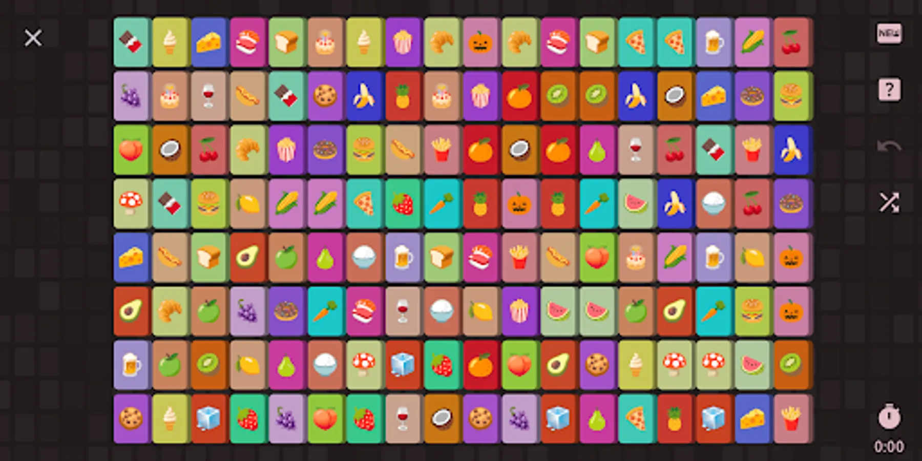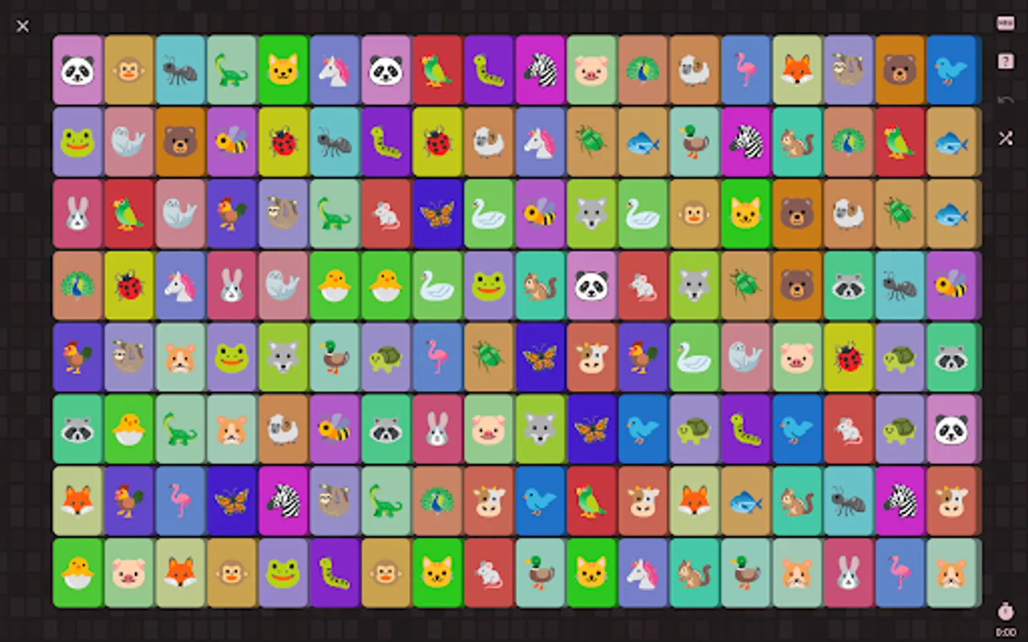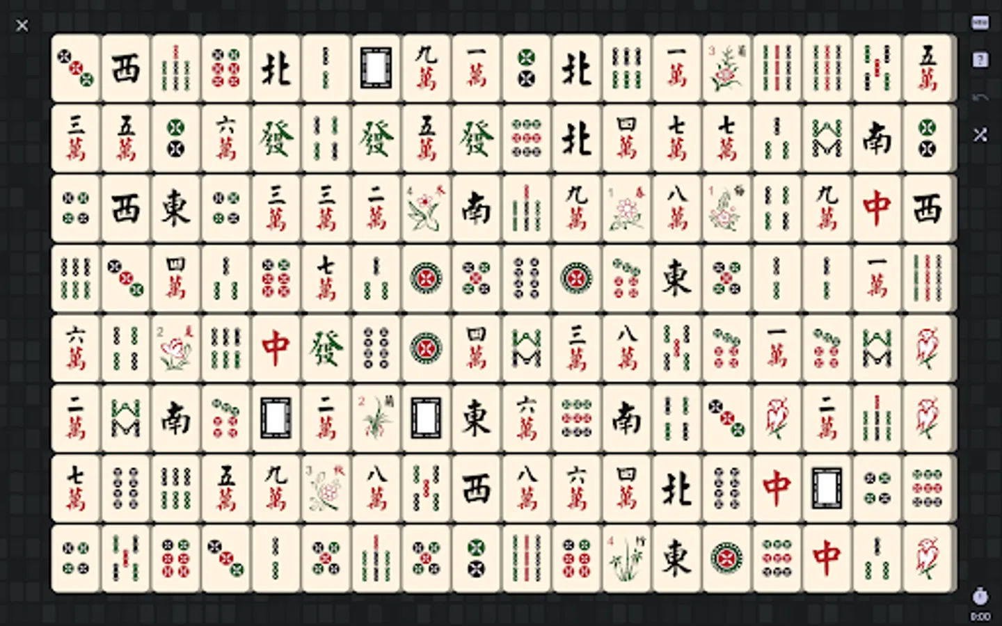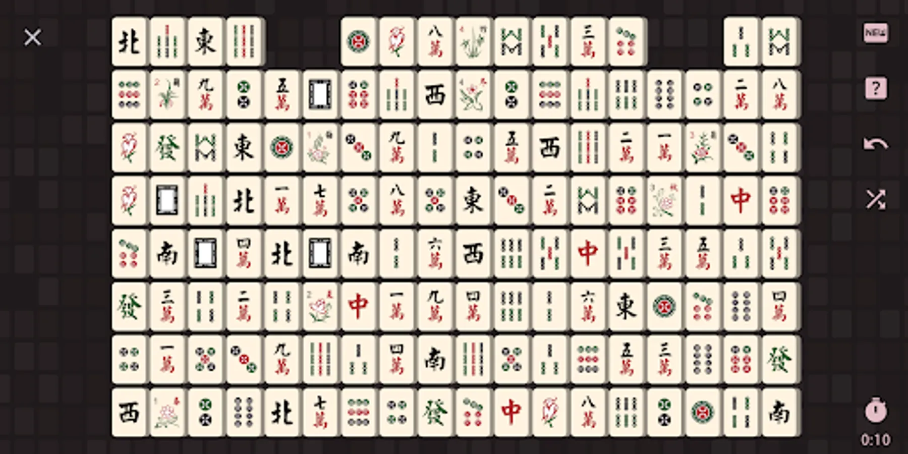 Shisen-Sho is a solitaire-like game where you need to clear the board by matching tiles in pairs.