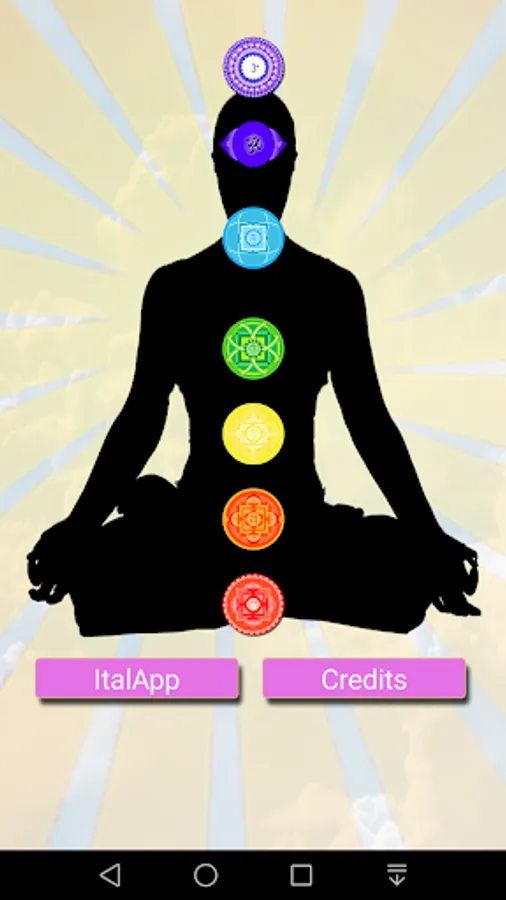 For each chakra you want to balance, you will have a page dedicated with the image of the chakra rotating on a base of colored rays. The colors will of course be those specific to the chakra in question and you will listen to a music that will help you enter a deepest state of meditation.