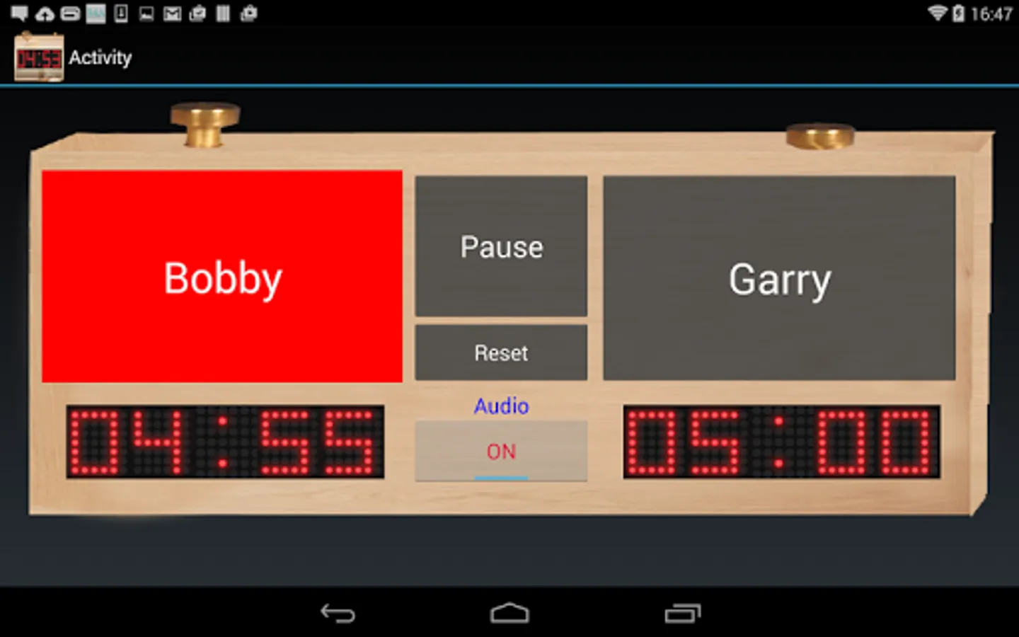 A totally free chess clock with a vintage appearance and red led numbers for your chess game. The timer is adjustable and you can also add the names of the 2 players.