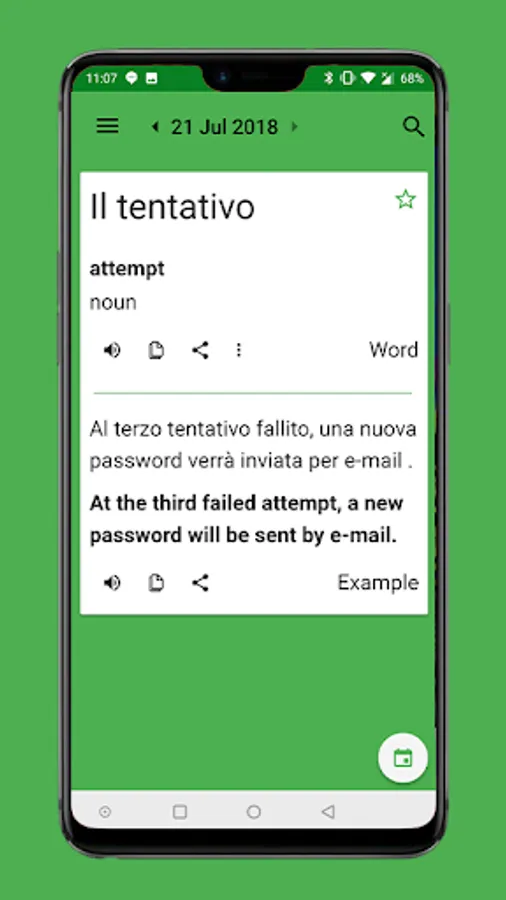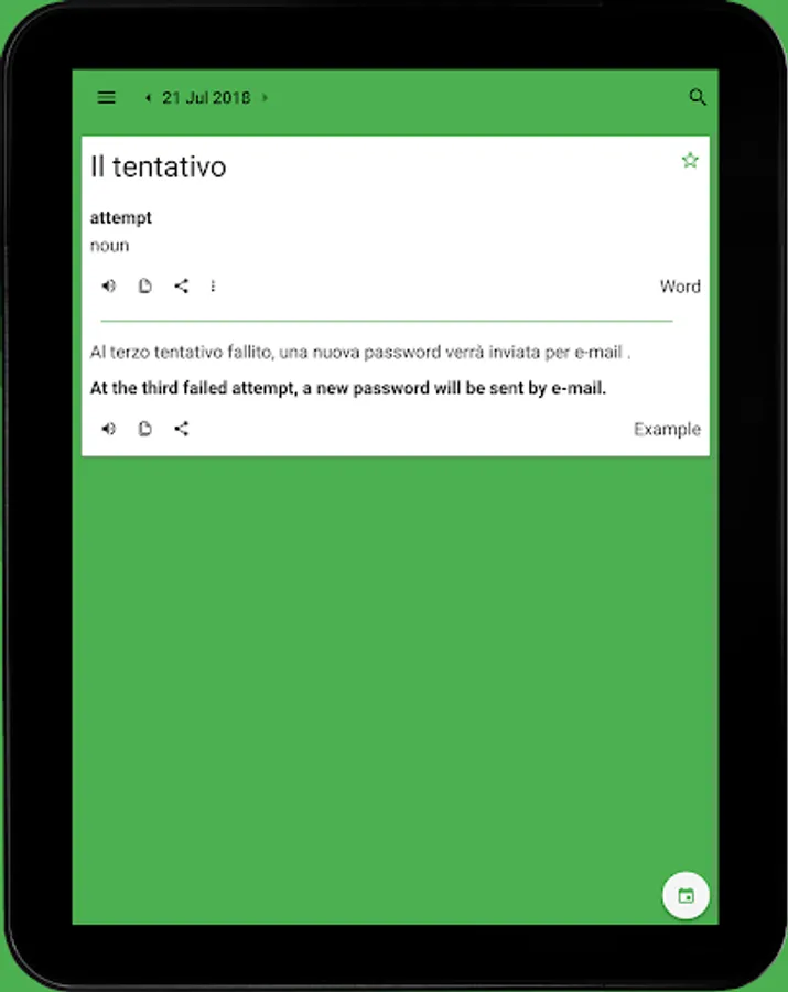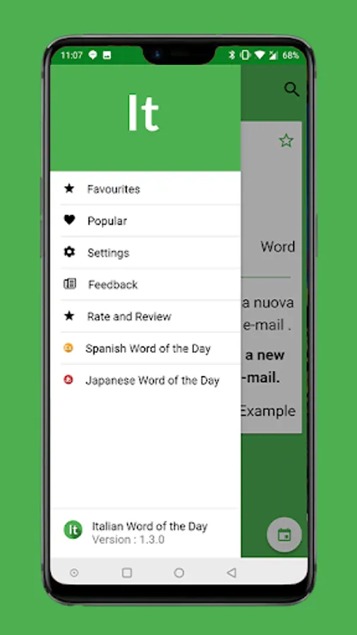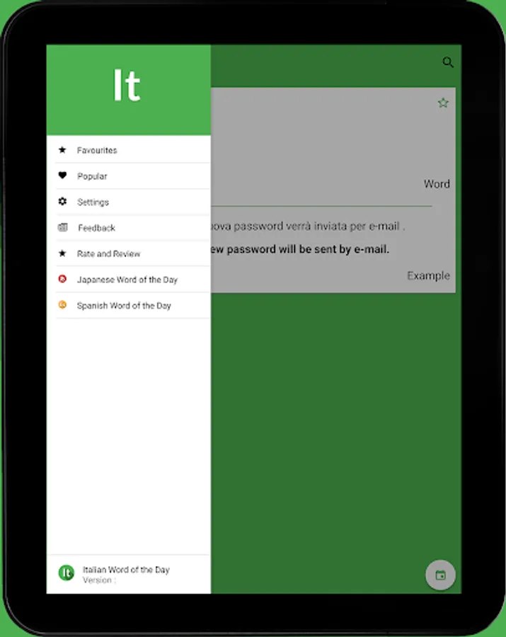 Learn a word a day from Italian! This app will allows you to set a notification time to get a reminder for today's word. we have you covered as we update a new word daily at 5:30 AM (GMT).