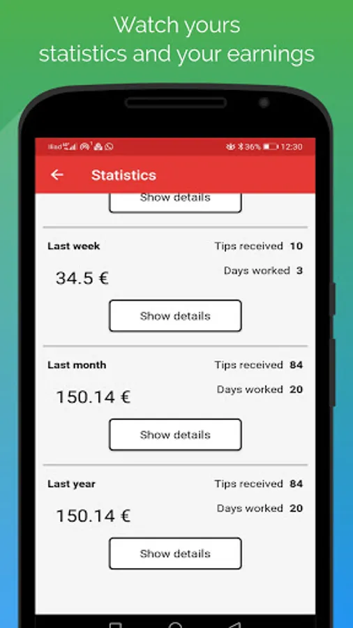 Are you a waiter 🍽️, delivery boy 🛵, postman ✉️, bartender ☕ or driver🚗? Do you do your job well and do your customers often tip you 💰 ? Thanks to this application you will be able to keep the bill of tips quickly and easily, without being distracted by what you are doing.
