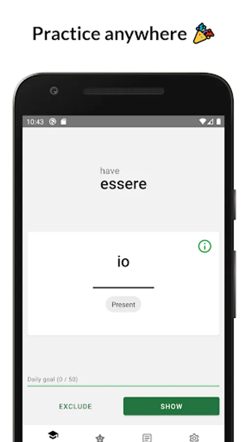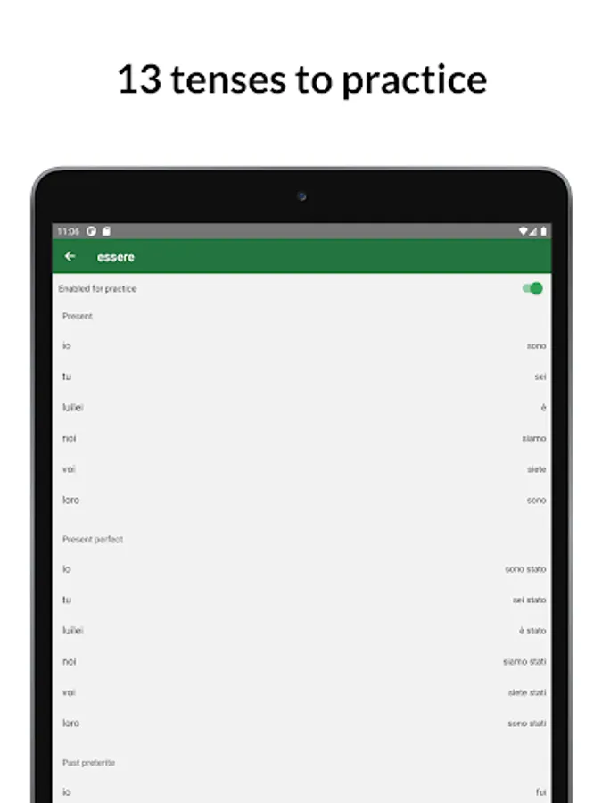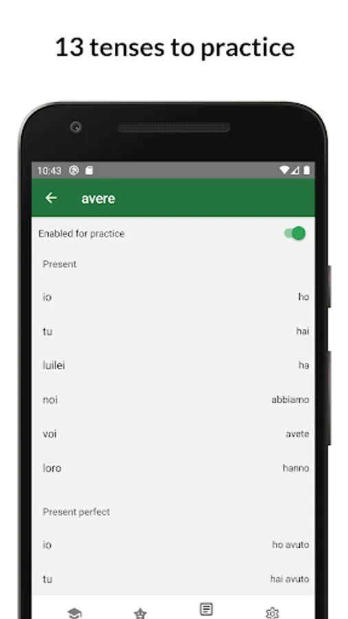 Verbare is the first app to make verb conjugation learning easy in Italian. Whenever you have a free minute, you can practice.