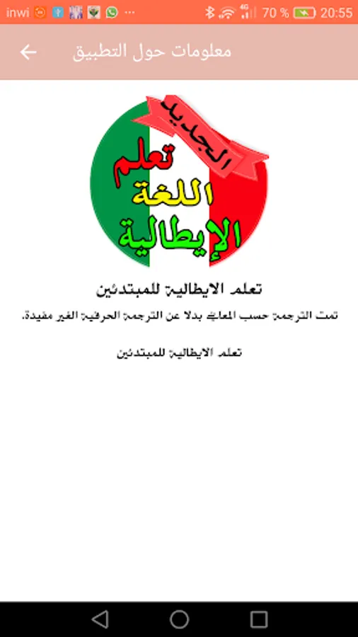 Italian language learning app for beginners is a comprehensive application that contains several sections and several different conversations according to each case all this with pictures to facilitate learning and without the Internet also this application also contains simple and easy new ways to facilitate communication in addition to pronunciation of words.