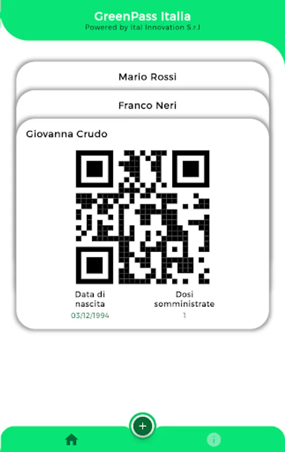 In this application you will be able to save all the GreenPasses that you need to have always at hand, whether they are yours or your family members'.