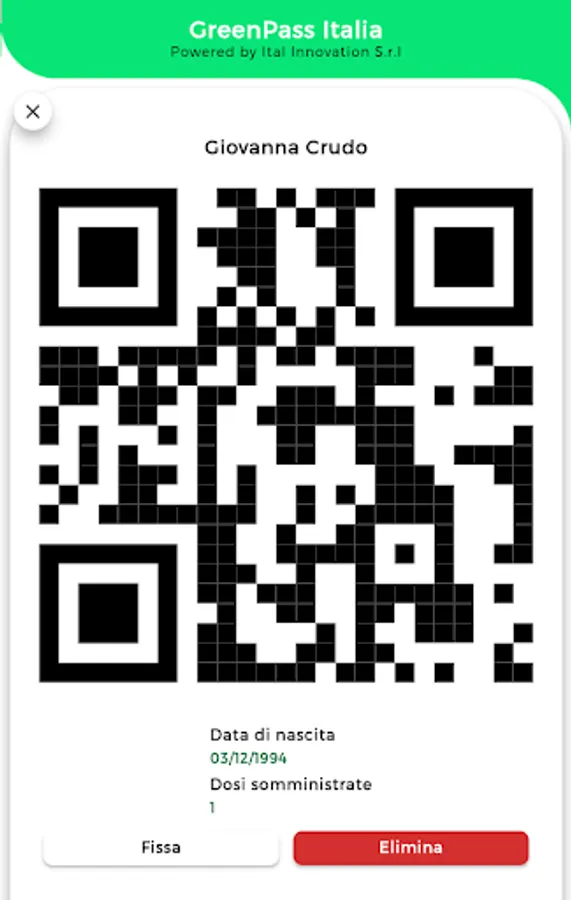 The data of your GreenPass will be saved only inside your phone and will not be accessible to us or anyone else. This is to ensure the respect of your privacy and for more data security.
