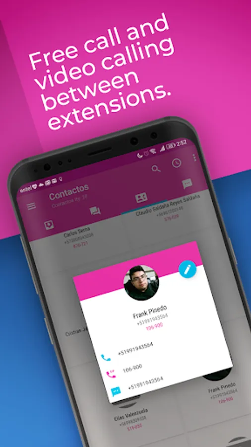 With individual chats, group chats, free SIP calls to extensions, mobile calls, landline calls, SMS sending and management of your extension's redirection, it will always be locatable and ready to receive or disseminate information, regardless of which part Of the world be.