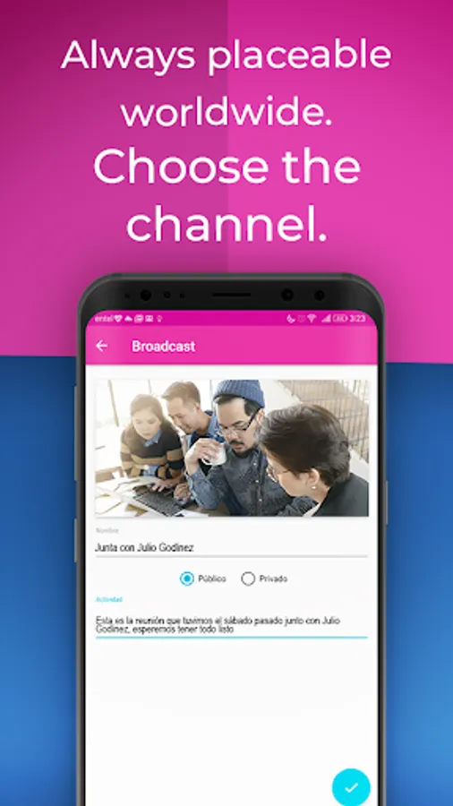 Create public or private Broadcasts, invite new subscribers or invite them to join by scanning a QR code and give your subscribers status updates for an event, photos and all relevant information