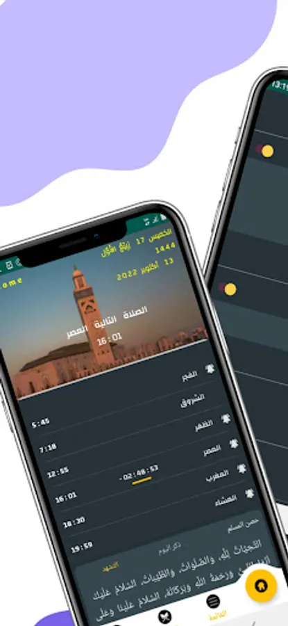 The possibility of activating, stopping and changing the notification time, with the choice of the alarm sound for the azkar.