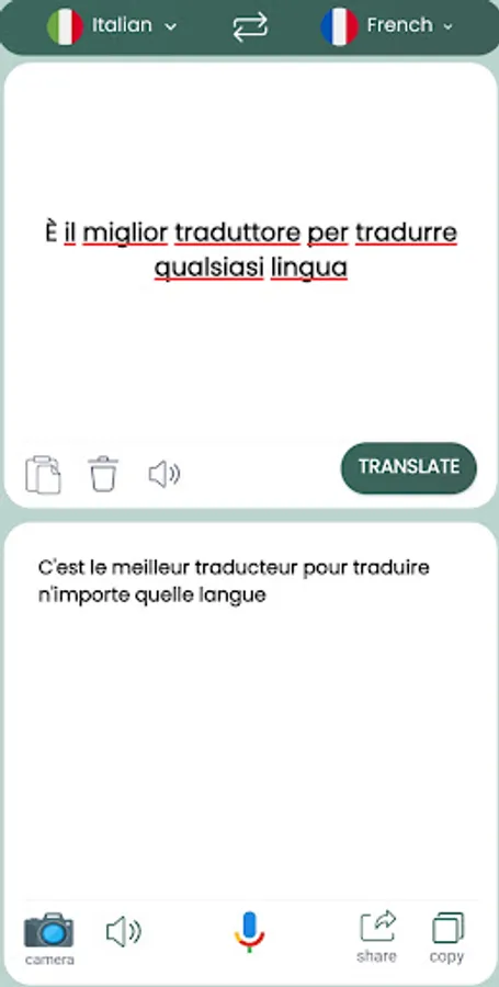 This is a app for Italian to French and also English to German translator.