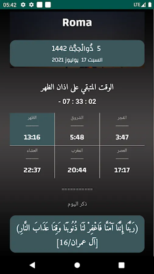 The application is available on renewed supplications and remembrances every day, in addition to Italy prayer times. Azan times Italy are available and without the need for the Internet.