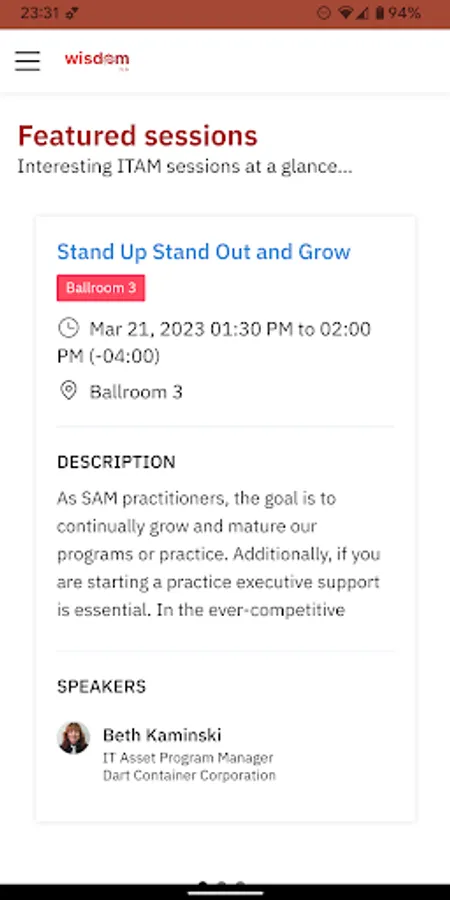 The ITAM Review Events app allows you to access, browse and manage your event agenda and view all the information you need for the event you are attending from anywhere.