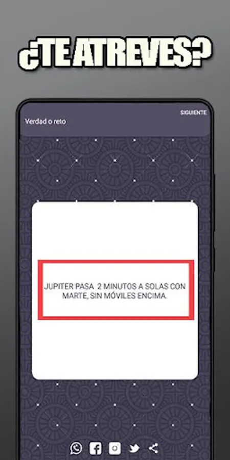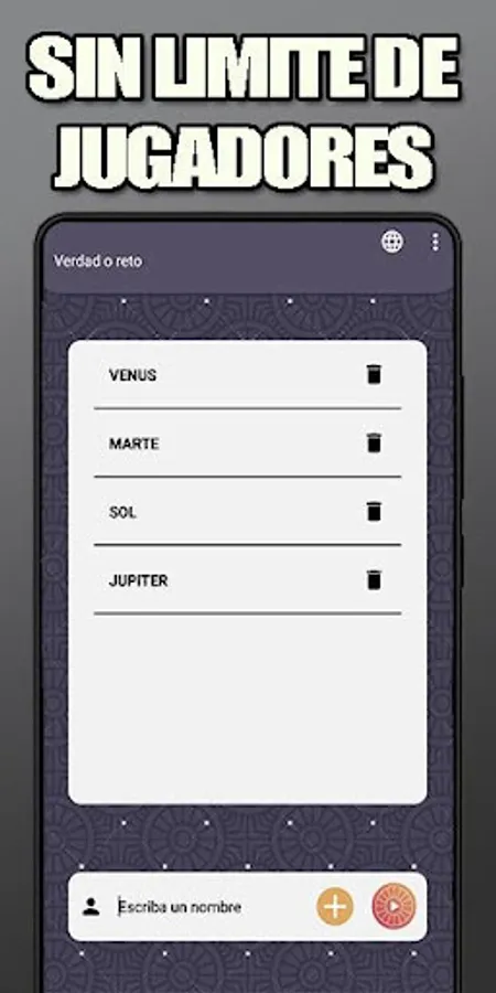 Truth or Challenge - Spicy Level, is an app that will brighten your sleepover nights with hundreds of challenges and questions, just enter the name of the participants and their system of challenges and random participants will do the rest, if you have ever asked if any of the participants would have something with you, what do they think about you ... with this app of truth and challenges you will be able to know it BUT ONLY IF IT COMES TO YOU!