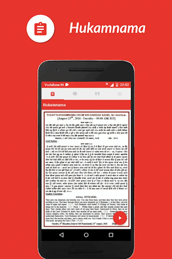Ability to share hukamnama with friends at a single Tap via various social networking platforms
