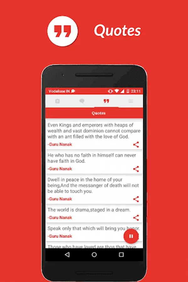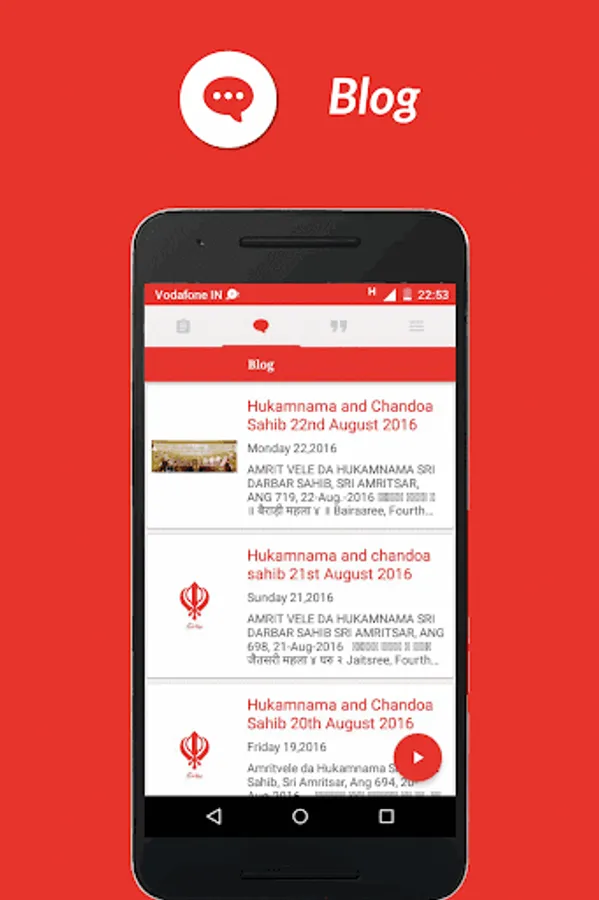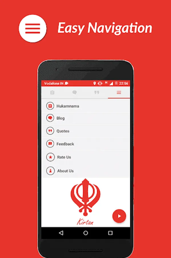 Kirtan application provides you with daily updated Hukamnama from Shri Harmandir Sahib Ji(Golden Temple) and live kirtan of Gurudwara. User can also read a daily updated blog where user can learn a lot about Sikhism.There are many quotes of Guru Nanak saheb which user can directly share on various social sharing platforms.
