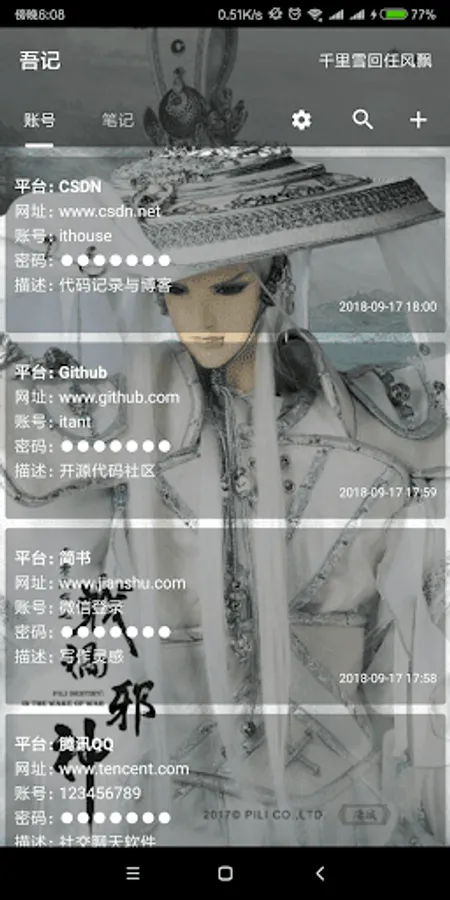 My memory is a secure memo application that records the bits and pieces of life. I use a lot of complicated encryption algorithms to ensure the security of the data, and can customize a variety of background skins, including custom skin, is a good helper for our lives.