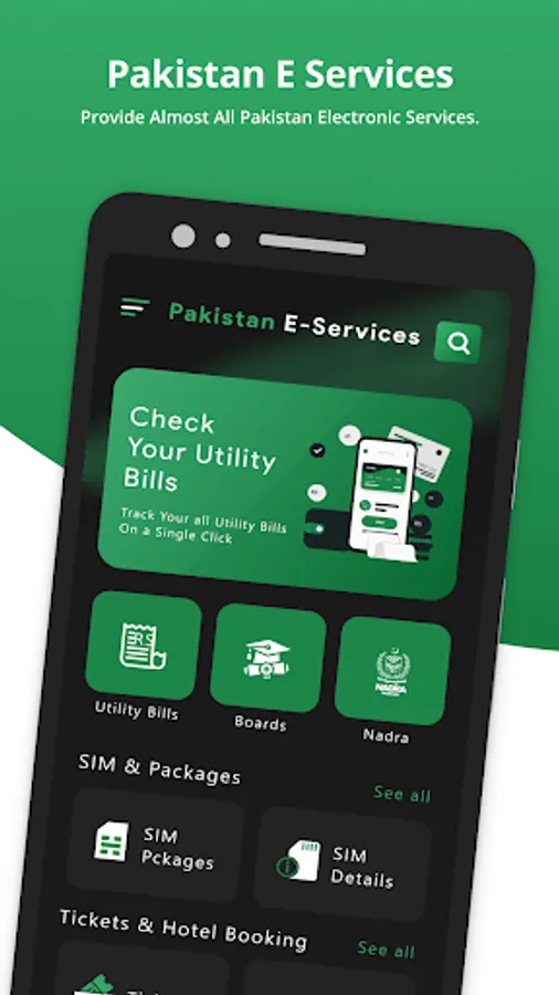 All E services Pakistan is a full featured e services app online services includes: