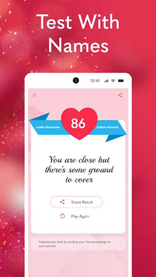 Do you know what true love in a relationship is? Or what is your perfect love match? How can you find signs of real love? Play Love test calculator games that will make your time enjoyable. If you are looking for love match, download this love test game for fun & see who loves you more.