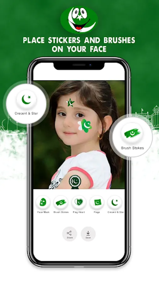Independence Day is an annual occasion celebrated every year on 14th of August. This 14 august photo editor app will make your 14 august Independence Day pictures the dp so far. Download “Pakistan Flag Face Photo Maker ” which is a pak flag face sticker app & Choose the Pakistan flag photo editor having faces stickers on 14 august images.