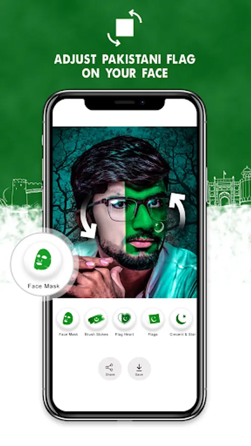 Pakistan Flag Face Photo Maker is the 14 august photo maker app for all Pakistani People. Create the pak flag dp on this happy Independence Day 14 august. Paste face sticker of pak flag on pic to create the facebook profile dp. Flag sticker on face will beatify your dp & give you the feel of independence. Let’s do Pakistan flag face paint with 14 august dp maker on your pictures by pasting pak flag on face.