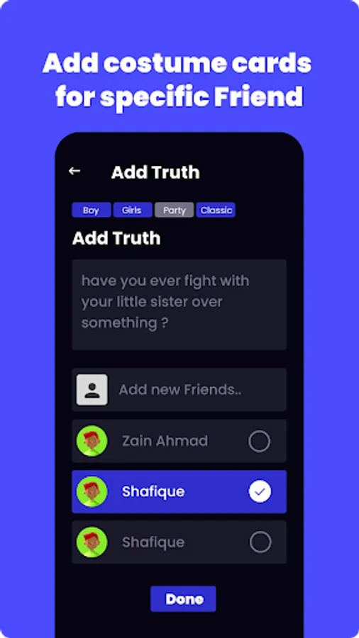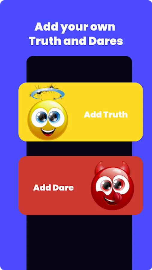 Truth or dare app free is packed full of features to customize truth or dare questions. You can add many truth or dare question of your choice.