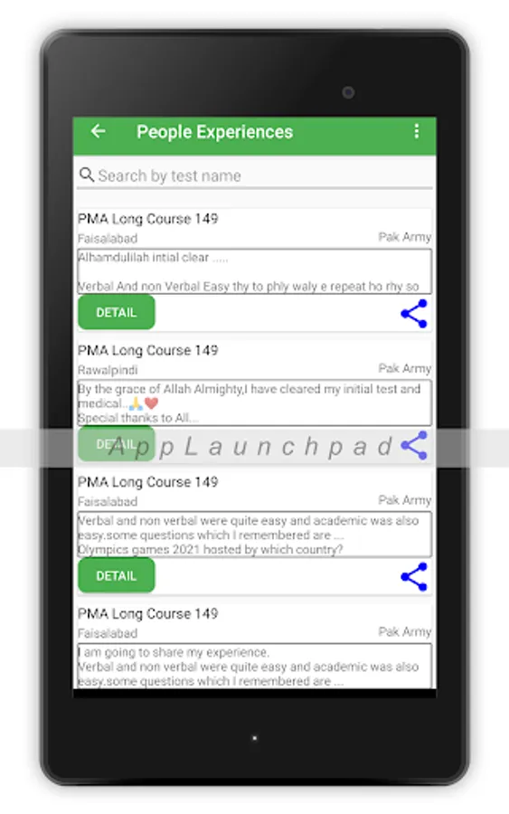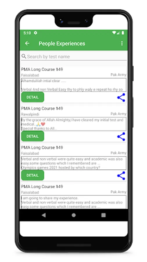 The user easily manages their own posts and view the other candidate’s recently Experience posts with the details of Test Name, Test Type, Test center, Post Date, Post Time, Experience Description.