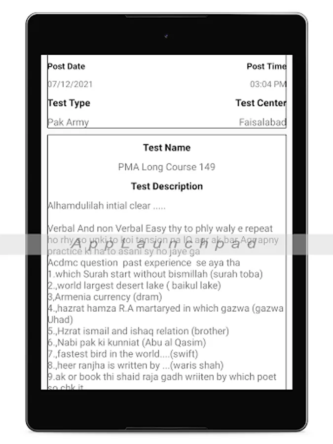 Initial Test Preparation is an app for Pak Armed Forces. This app helps the candidate of Pak Army, Pak Air Force and Pak Navy in initial test preparation including interview questions.