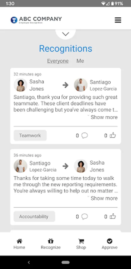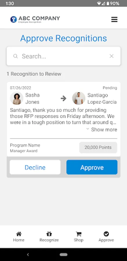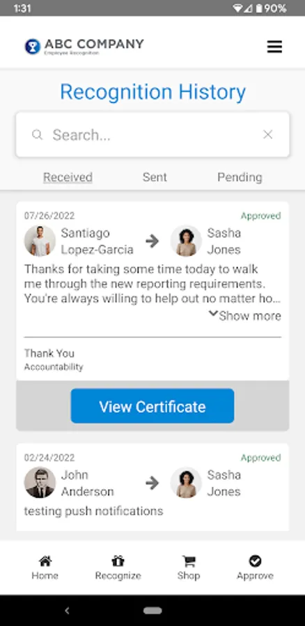 Note: You must be a participant in your company’s employee recognition program and have program communications direct you to download this app.