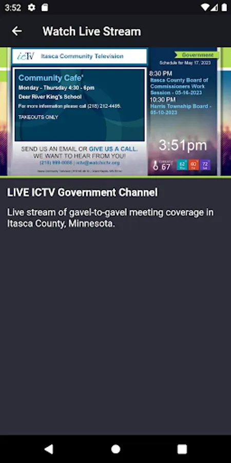 ICTV is the public, education, and government access station for Itasca County, Minnesota, located in Grand Rapids, Minnesota. Videos feature gavel-to-gavel coverage of county, city and township government meetings. Staff creates feature programming. Members create videos for and about Itasca County residents ranging from environmental to cooking shows.