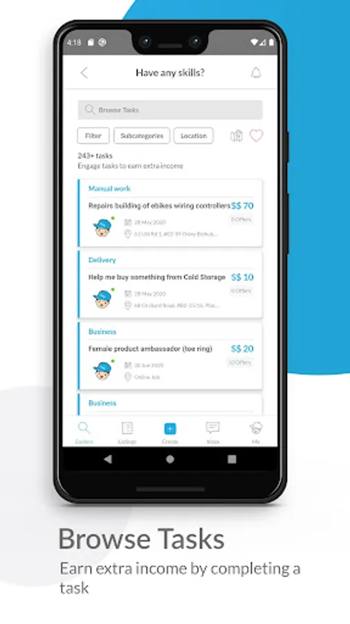 Got extra time on hand? Select tasks to complete and bring home extra pieces of bacon. Filter through locations, nature of task and compensation rate for the perfect task. From over millions of jobs and errands to choose from, there's always something for everyone.
