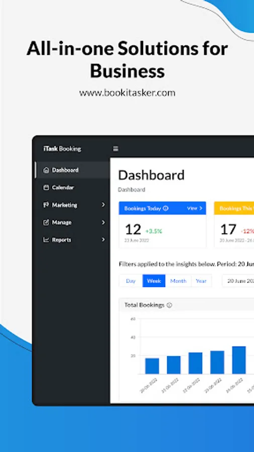 Good Day! If you're looking for a reliable and user-friendly booking appointment system, then iTasker booking app is the perfect solution for you. You can manage client bookings, send appointment reminders, and track staff availability. Our booking appointment system is designed to help you streamline your business and provide a seamless experience for your customers and grow your business effectively.